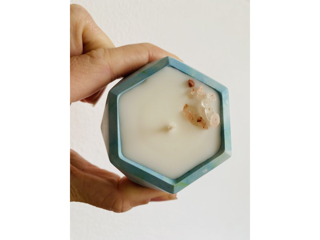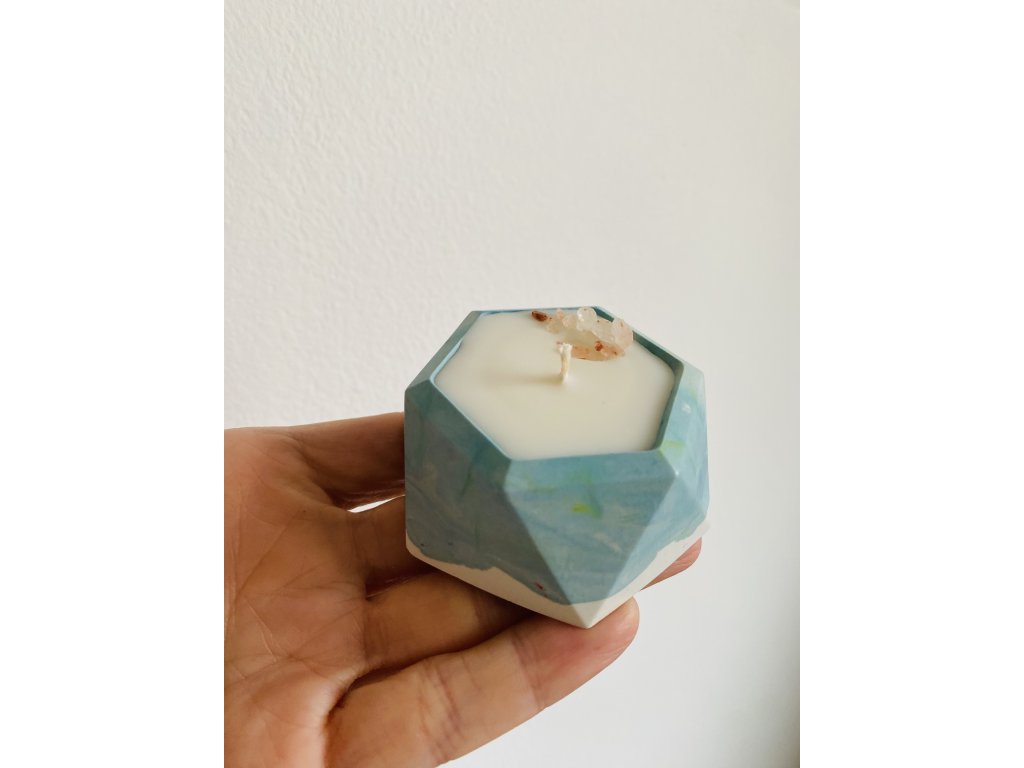 Nádoba je ručně vyrobena z lehkého betonu,která se dá po vypálení svíčky dále požívat. Tento materiál je velmi odolný a nehořlavý. Díky ruční výrobě se mohou v materiálu objevit malé nedokonalosti, jako jsou například vzduchové bublinky, které nemají na celkovou kvalitu vliv a jsou běžným jevem.