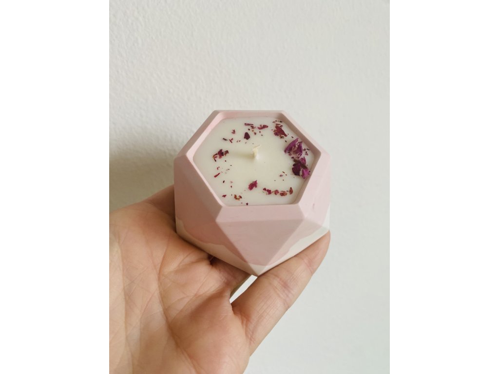 Nádoba je ručně vyrobena z lehkého betonu,která se dá po vypálení svíčky dále požívat. Tento materiál je velmi odolný a nehořlavý. Díky ruční výrobě se mohou v materiálu objevit malé nedokonalosti, jako jsou například vzduchové bublinky, které nemají na celkovou kvalitu vliv a jsou běžným jevem.